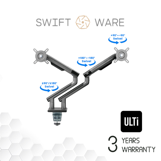 ULTi T18 Flex DUAL Monitor Arm, Height Adjustable Mechanical Spring Monitor Desk Mount Stand, VESA, Ergonomic Design for 2 monitorsVendor:ULTiRegular price $117.59 SGDRegular priceUnit price / per-